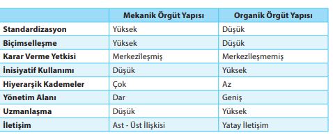 Mekanik örgütlerde ületişim ast-üst ilişkisi, organik örgütlerde yatay iletişim şeklindedir. |
