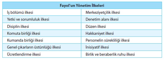 Henri Fayol’un yönetim ilkeleri 14 adet ilkeyi kapsamaktadır: