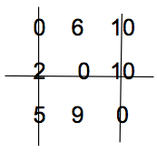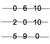 - Tablo üzerinde sıfır değerini alan tüm ögelerden geçen en az sayıda dikey ya da yatay doğrular çizilir. Eğer bulunan doğru sayısı = n ise, eniyi çözüme ulaşılmış olup adım beşe, değilse izleyen adıma geçilir.