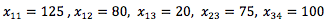 Tablonun en kuzeybatısında yer alan X11 hücresi seçilir ve o hücreye alabileceği maksimum değer olan "125" atanır. Daha sonra ilk sütun kapatılır. Kuzeybatıda kalan X12 hücresine alabileceği en büyük değer olan "80" değeri atanır. Benzer şekilde 2. sütun da kapatıldıktan sonra, kuzeybatıda kalan X13 hücresine alabileceği en yüksek değer olan "20" atanır ve ilk satır kapatılır. Daha sonra en kuzeybatıda kalan X23 hücresine "75" değeri atanır ve ikinci satır ve üçüncü sütun da kapatıldıktan sonra, X34 hücresine de "100" değeri atanır.