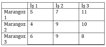 3 marangozun 3 işi tamamlama süreleri aşağıdaki gibidir.