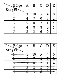 Bundan sonraki adımda; fırsat kayıplarının sütunlardaki minimum değerlerini tespit ederek tamamlanır.