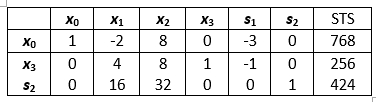 Amaç fonksiyonu satırındaki enbüyük değere bakılır. Amaç fonksiyonunda x2 katsayısının 5 olması, X0=CX fonksiyonunda bu değişkenin katsayısının ( - ) olması demektir. Bu değer temele alındığında amaç fonksiyonunun değerinin dahada küçüleceğini gösterir.