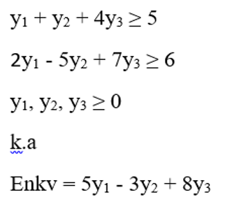 x1 - 2x2 ≤ 5 x1 + 5x2 ≤ -3 4x1 - 7x2 ≤ 8 x1, x2 ≥ 0 k.a Enkz = 5x1 - 6y2 |
