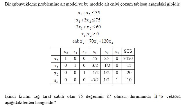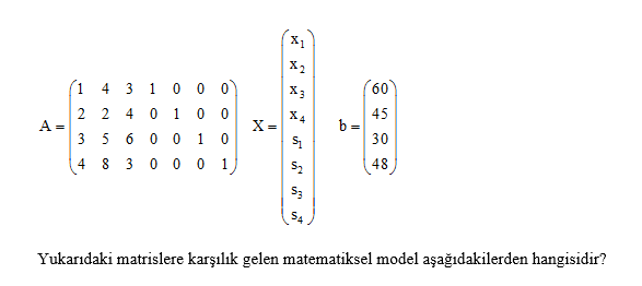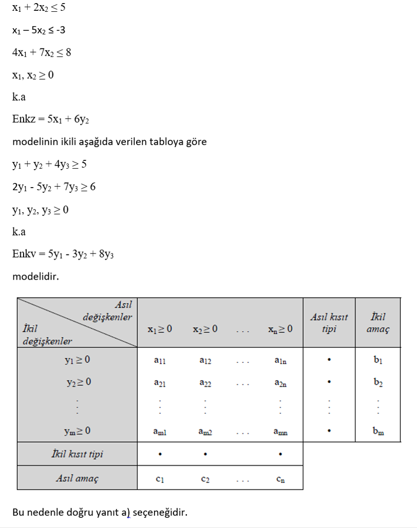 Yukarıda verilen kanonik biçimde yazılmış doğrusal programlama modelinin ikili aşağıdakilerden hangisidir?