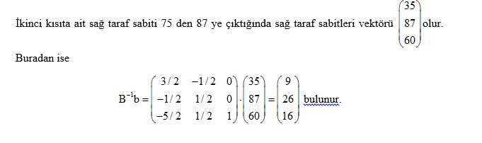 Sağ taraf sabitleri de denen kaynak vektöründe bir değişim, eniyilik