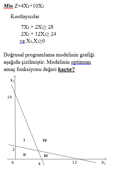 Amaç en küçükleme olduğu için orjine en yakın noktalarda çözüm araştırılır. Bu nedenle A ve B noktaları için en küçük değer optimum olarak ele alınır.
