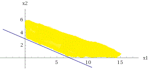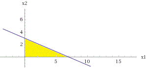 Örnek modeldeki X1(Ürün I’den üretilecek miktar) genellikle apsis (yatay) ekseninde, X2(Ürün II’den üretilecek miktar),ordinat (düşey) ekseninde gösterilir.